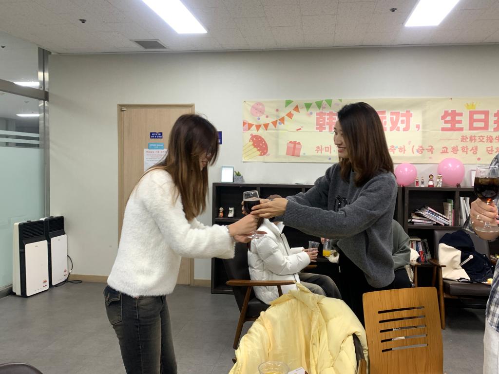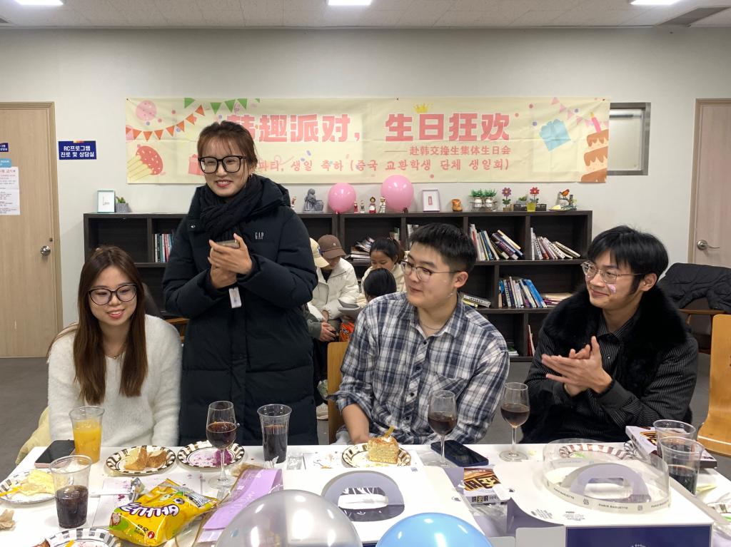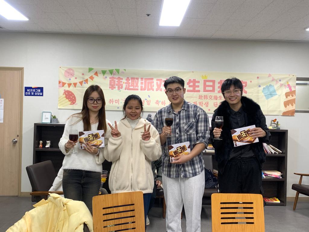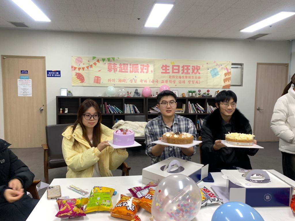 岁岁年年,温暖无界。为丰富交换生职工活,增进交换生之间的情感交流与互动,共同创造珍贵且难忘的回忆。2024年11月27日,赴韩交换师生团队在清州大学活动室组织了一场热闹而温馨的集体生日会,让身处异国他乡的交换生们在充满爱与关怀的氛围里深切感受到被重视和珍视。