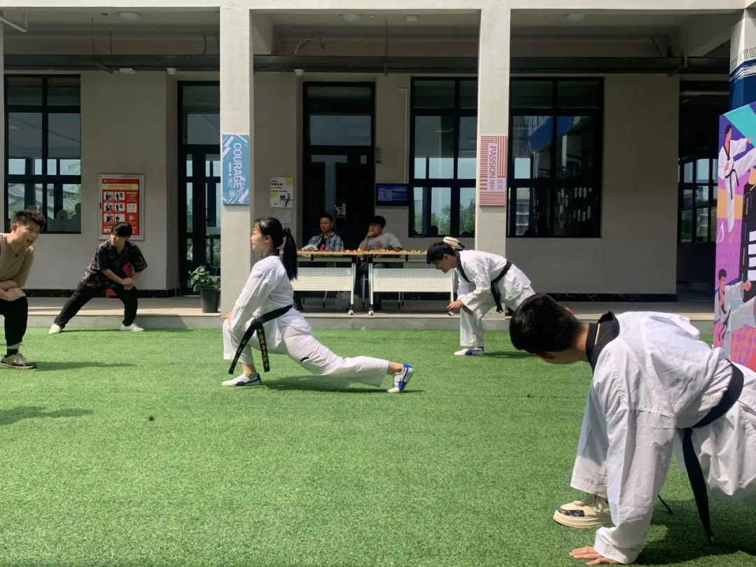 实践环节将活动推向高潮。在跆拳道社员们的带领下,同学们首先进行了15分钟的趣味热身。